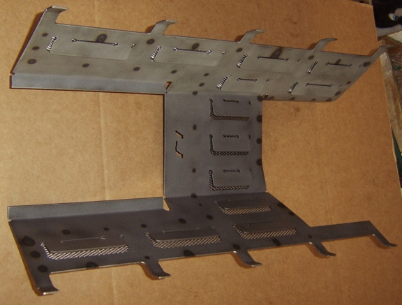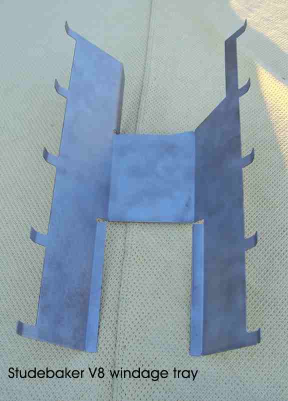Studebaker V8 R type engines (may fit other Studebaker V8 pans as well) Modified version of factory windage tray. Louvers and directional screening are added. Two versions are shown below: stock design and one for use with a dry-sump. $349.95